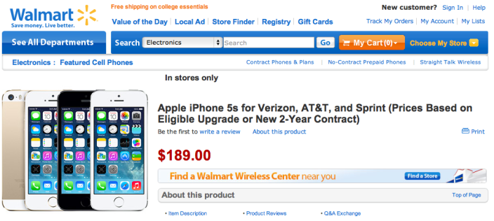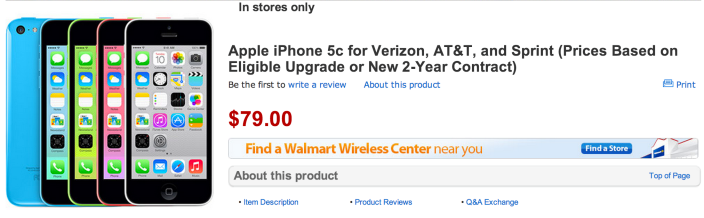 Anteriormente se encontraban a $189 dólares el iPhone 5s sujeto a plan y a $79 el 5c en Wall-Mart, son precios bastante buenos pero tomemos en cuenta que no podremos cancelar el plan hasta que termine el contrato, el cual es de 2 años.