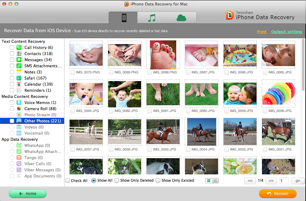 iPhone Data Recovery permite recuperar hasta 20 tipos de archivos diferentes entre los que se encuentran el historial de llamadas, contactos, mensajes, adjuntos, notas, Safari, Calendario, Recordatorios, fotografías, vídeos, notas de voz, archivos de WhatsApp y adjuntos y mucho más. Pero ¿cómo hacerlo? Muy sencillo.
