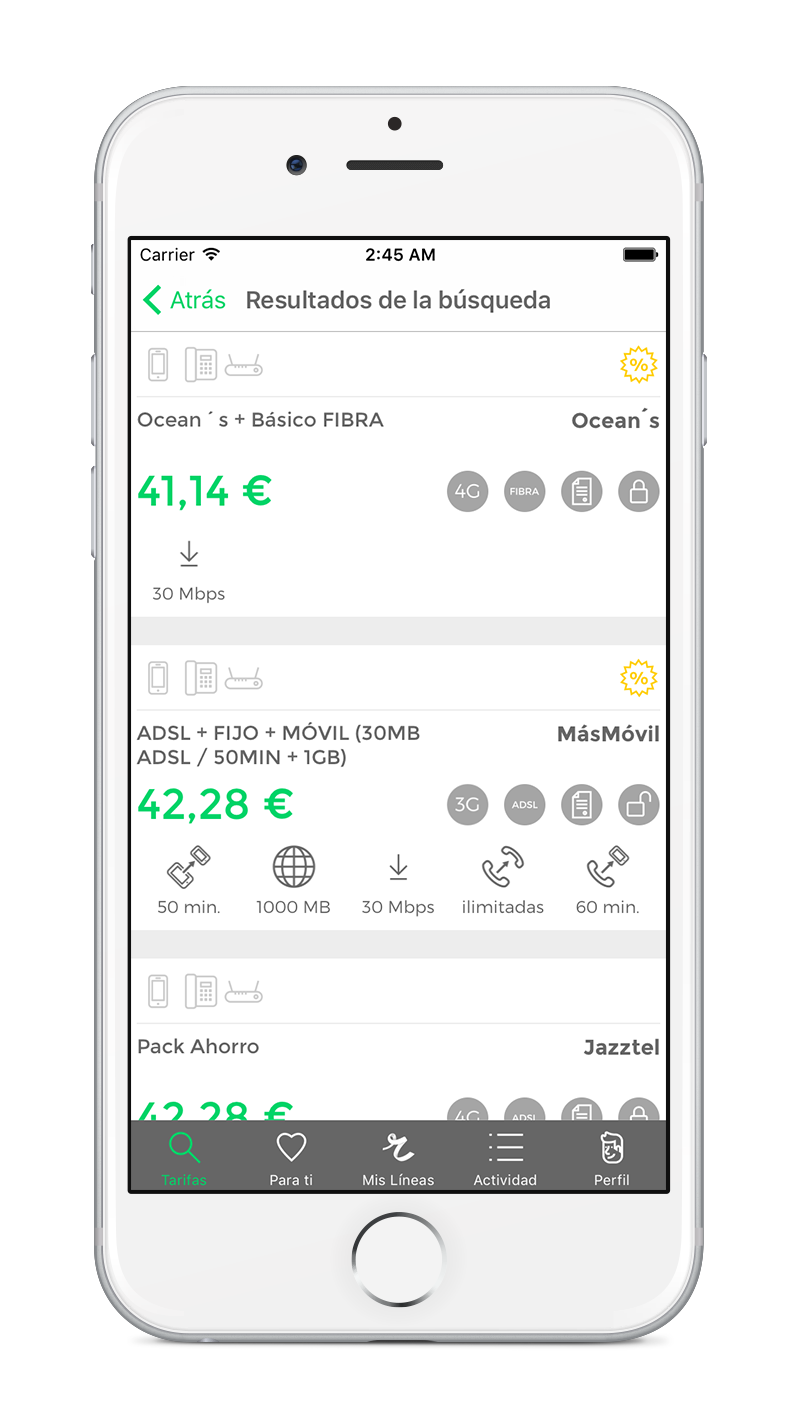 De hecho, es muy probable que descubras operadoras que ni siquiera sabías que existían y que realmente suponen un ahorro. Una vez que te interesa uno, se te dirige a la página web con toda la información sobre la compañía y las tarifas y también se te envía un correo electrónico con el enlace para que lo tengas a mano y lo recuerdes. Las ofertas que la aplicación te muestra pueden ser solo de móvil, o también unir fibra / adsl para casa y televisión.