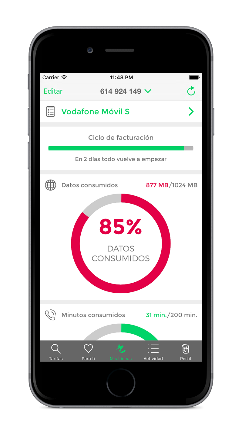 El proceso de registro en la aplicación es bien sencillo. Lo único que necesitas es descargarla desde el App Store de forma gratuita y acceder con tu correo electrónico, Facebook o cuenta de Google. Una vez hecho esto, solo tienes que seleccionar tu operador de una larga lista con todos los disponibles en España, introducir tus credenciales de acceso y listo. Ya aparecerá tu portal con toda la información de consumo.