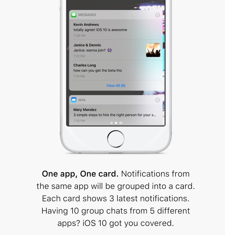 Durante la presentación de iOS 10 en el WWDC, vi algunas imágenes que me hicieron creer que, por fin, iOS 10 iba a agrupar las notificaciones de una misma aplicación, pero cual fue mi sorpresa al probar las betas que, lejos de hacer eso, con el rediseño de las tiras en los que aparecen, ¡ocupan más espacio todavía! Tengo que reconocer que esto Android lo gestiona infinitamente mejor, y es hora de que también se pongan las pilas en Apple.